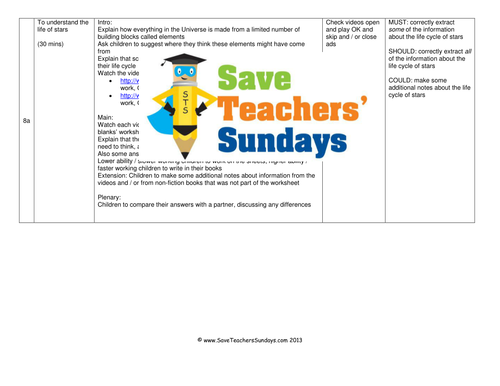 Life Cycles of Stars KS2 Lesson Plan and Worksheet by